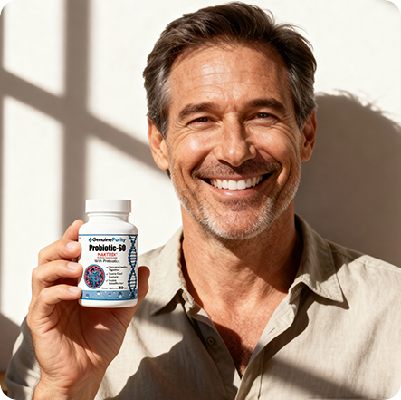 GenuinePurity® Probiotic-60 is the brainchild of an expert research team with more than 25 years of experience developing potent, all-natural health supplements. The unique fusion of clinically endorsed probiotic strains is meticulously crafted to promote results that last.