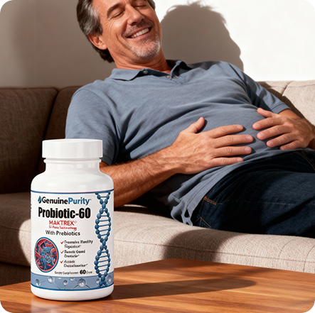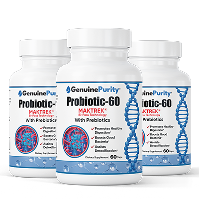 The gut has been called “the second brain”. Gut health can affect everything from our immune system function and digestion to our hormone production and cognitive performance. That’s why maintaining a healthy gut is key to preserving well-being, especially as we age. GenuinePurity® Probiotic-60 is loaded with highly beneficial probiotic strains shown to promote dynamic benefits for gut health, digestion, and immune wellness in clinical studies. And the cutting-edge MAKTREK® Bi-Pass Technology makes these nourishing probiotics more viable.